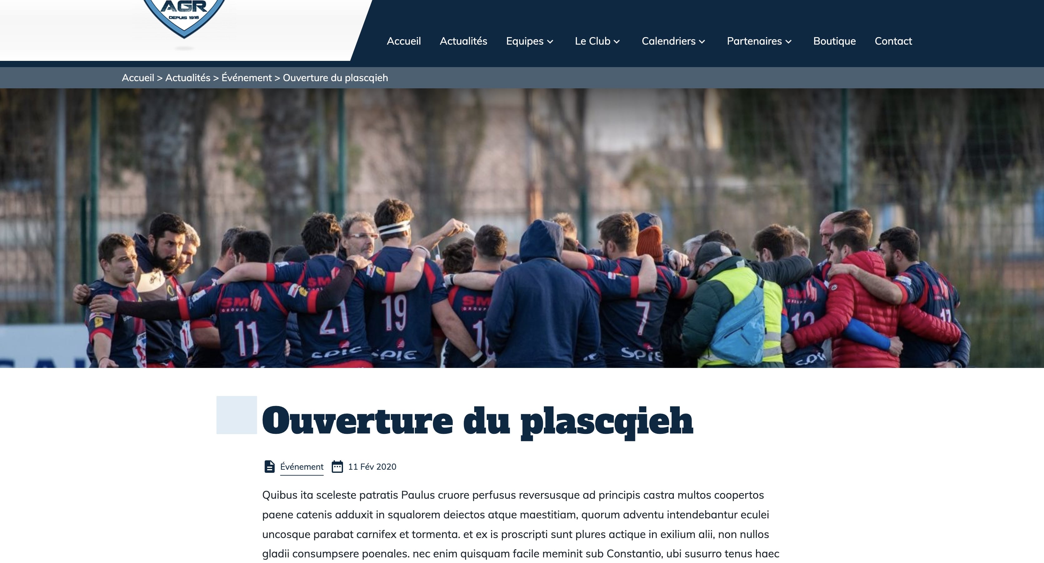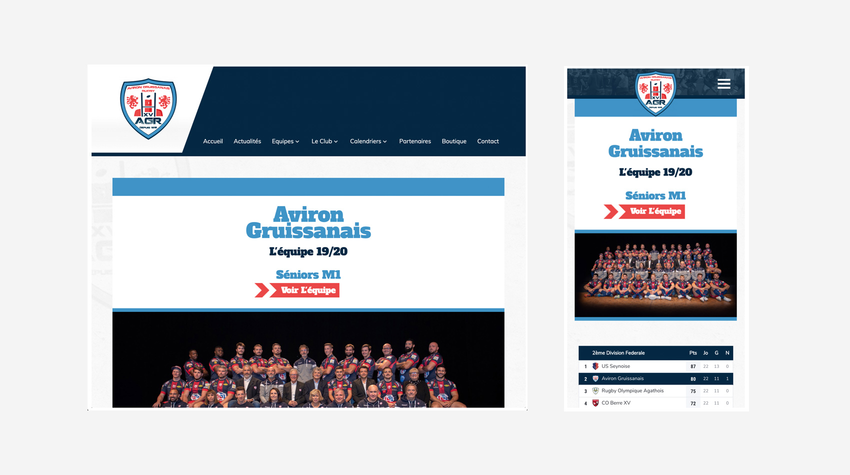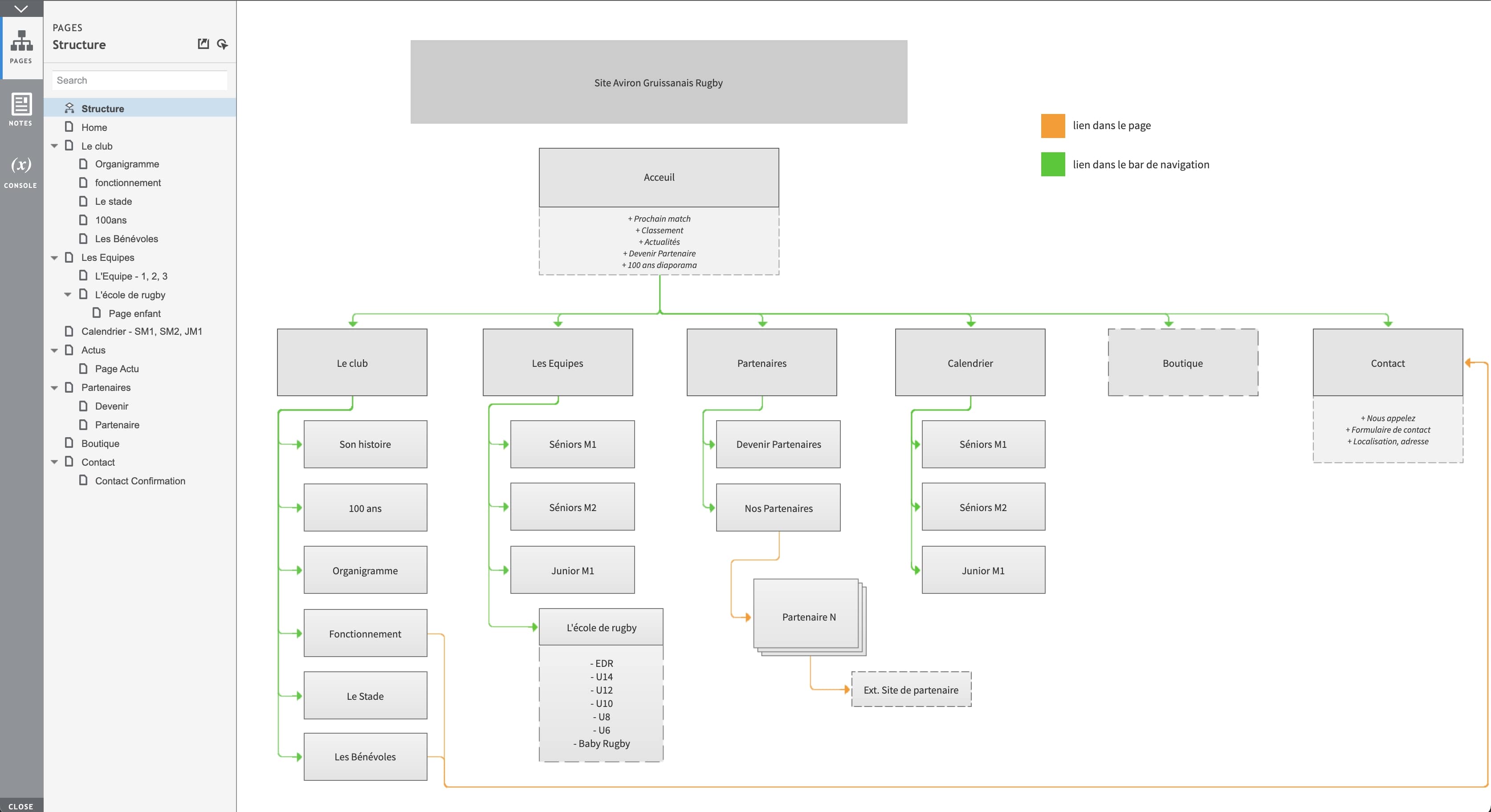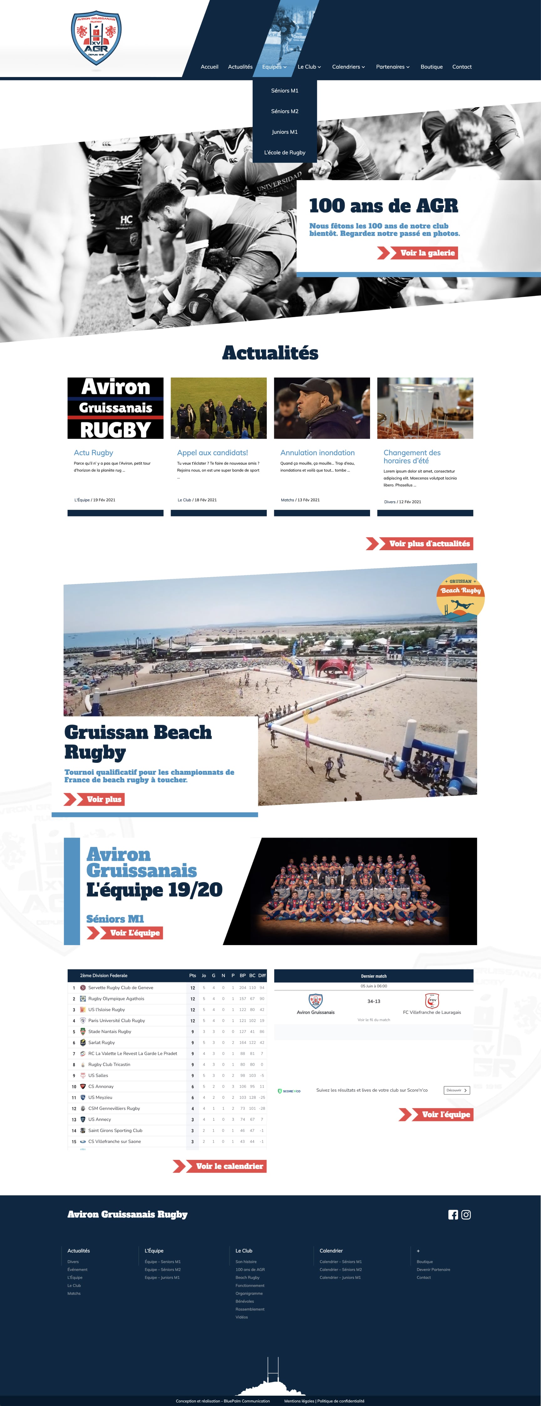 Once the client validated the site map and requirements, I researched sports websites, looking at trends and conventions on professional sports teams websites (Rugby, Football, Basketball).