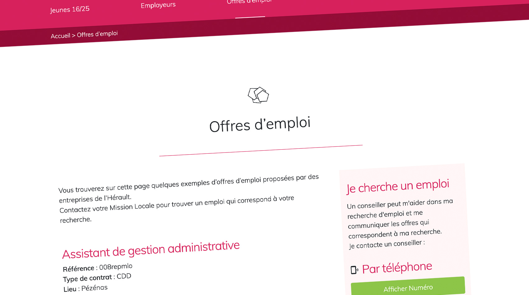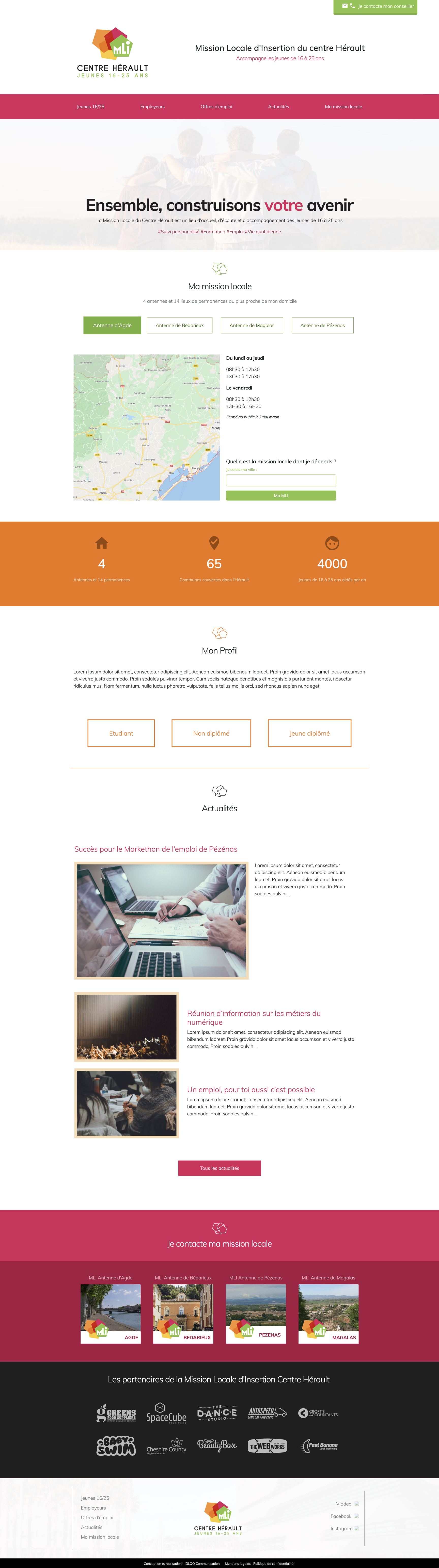 The client, a public service organisation for young adults in an area in the south of France, needed a site to offer its services to the public.